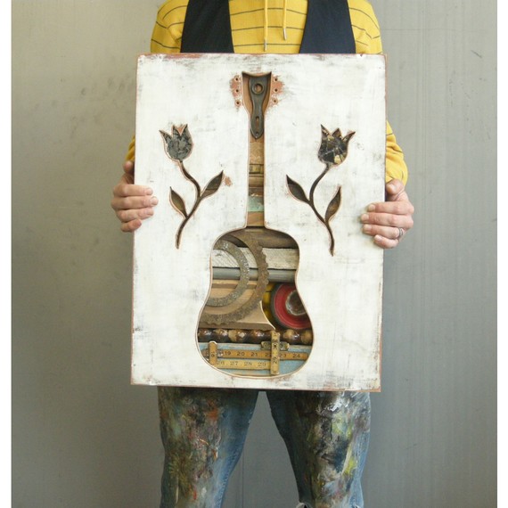 My heart pounded when I came across this amazing piece by Dolan Geiman Again with that rugged, smart, sort of modern Americana that I love - self described "contemporary art with a southern accent". My fave combo. The texture - always the element that speaks to me - of the found and recycled materials is, well, beautiful.